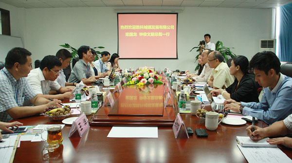 2014年8月12日,勝科城鎮(zhèn)發(fā)展公司副總裁梁國龍、鐘俊文在廣西自治區(qū)商務(wù)廳副廳長韋朝暉、北海市副市長石昆的陪同下赴中國電子北海產(chǎn)業(yè)園,就以北部灣智慧生態(tài)電子城項(xiàng)目為基礎(chǔ),雙方進(jìn)行戰(zhàn)略合作有關(guān)事宜進(jìn)行實(shí)地考察??疾炱陂g,自治區(qū)黨委常委、北海市委王小東書記進(jìn)行了親切會(huì)見,北海市政府林山青常務(wù)副市長帶隊(duì)與考察團(tuán)進(jìn)行了座談。