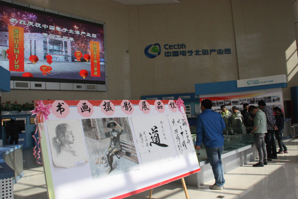 系列活動以當月初征集書畫、攝影作品拉開序幕,通過海報、網(wǎng)站、微信等多種平臺號召園區(qū)全體職工與社會關注園區(qū)發(fā)展的熱心人士參與首屆中國電子北海產(chǎn)業(yè)園書畫、攝影創(chuàng)作比賽,截止開園5周年前夕,共收到各類作品40余幅。經(jīng)過籌備小組、評委、藝術老師的認真篩選、對比,評選出了一二三等獎及優(yōu)秀獎若干名,獲獎作品不僅個性鮮明、創(chuàng)意新穎、富有時代美感,而且體現(xiàn)了電子信息行業(yè)鮮明的特色。獲獎作品與以反映園區(qū)建設歷程、科技成果、領導關懷為主題的圖板一同于12月30日在園區(qū)向全體職工展出。