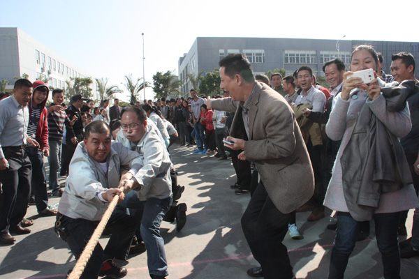下午,一場別開生面的拔河比賽將活動推向小高潮。拔河比賽以促進企業(yè)交流為宗旨,豐富職工體育活動為目的,為企業(yè)搭建展現(xiàn)集體風采的舞臺,從而發(fā)揚團隊精神,增強凝聚力。此次比賽園區(qū)企業(yè)積極響應,共有11個企業(yè)組隊參加,特別是有些企業(yè)為了參賽,臨時停工,比賽結束后回單位繼續(xù)生產(chǎn),體現(xiàn)了園區(qū)大家庭的凝聚力。每支參賽隊伍共15人,其中男生10人,女生5人,實行淘汰制晉級方式。當比賽哨聲響起,各參賽隊員們口中一起高呼“一二,一二”,雙手緊握長繩,憋足勁拼命往后拉,拉拉隊在旁助陣加油,恨不得抓起繩子跟隊員們一起努力,各種加油聲、吶喊聲此起彼伏,回響至整個園區(qū)。經(jīng)過激烈較量,最終冠捷科技獲得冠軍,瑞達物業(yè)獲得亞軍。