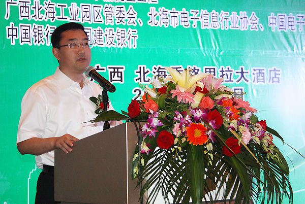 '      作為本次論壇邀請的演講嘉賓,中國電子集團控股有限公司副總經(jīng)理、北海市電子信息行業(yè)協(xié)會會長賀海華在論壇上做了題為“招商扶商 合作共贏 助力北海電子信息產(chǎn)業(yè)發(fā)展”的主題演講。賀海華會長向與會嘉賓介紹了北海市電子信息行業(yè)協(xié)會的基本情況和開展的重點工作,并分享了作為會長單位的中國電子北海產(chǎn)業(yè)園在過去幾年來,搭建平臺、招商扶商,助力實現(xiàn)了北海電子信息產(chǎn)業(yè)跨越式發(fā)展。未來,協(xié)會及會長單位將繼續(xù)完善產(chǎn)業(yè)發(fā)展環(huán)境,搭建政企、銀企等多方溝通平臺,合作共贏,助力北海千億元電子信息產(chǎn)業(yè)發(fā)展。