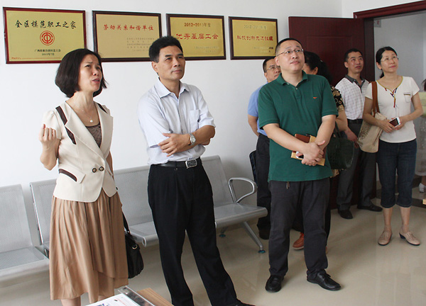 2016年5月19日,由自治區(qū)總工會(huì)副主席元德新率領(lǐng)的自治區(qū)總工會(huì)調(diào)研組在北海市總工會(huì)書記柳金紅的陪同下,到中國(guó)電子北海產(chǎn)業(yè)園考察“五心”職工之家建設(shè)情況。