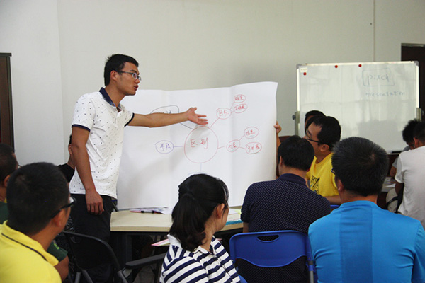 體驗(yàn)課由中國(guó)地質(zhì)大學(xué)博士、子謙國(guó)際創(chuàng)業(yè)教育學(xué)院首席專家、河北地質(zhì)大學(xué)創(chuàng)新創(chuàng)業(yè)教育學(xué)院執(zhí)行院長(zhǎng)與教學(xué)總監(jiān)朱燕空作為主講。體驗(yàn)課以新常態(tài)下雙創(chuàng)發(fā)展及市場(chǎng)拓展為背景,就創(chuàng)業(yè)思維內(nèi)涵、體驗(yàn)創(chuàng)業(yè)思維之旅、創(chuàng)業(yè)思維與管理思維對(duì)比,與學(xué)員們探討交流雙創(chuàng)發(fā)展之路,布置各小組“制造未來”任務(wù),設(shè)想了創(chuàng)業(yè)之路所遇到各種機(jī)遇與困阻。朱院長(zhǎng)表示,創(chuàng)業(yè)成長(zhǎng)期,大部分創(chuàng)業(yè)青年不缺乏目標(biāo)和想法,著實(shí)選擇一個(gè)有效的路徑去實(shí)現(xiàn),路徑有很多,每條路徑都代表著一種可能性,并且充滿了不確定性,關(guān)鍵在于如何找到有效的路徑,需要我們?nèi)バ袆?dòng)、反思和調(diào)整;而不是過多的詳細(xì)規(guī)劃,注重逐步執(zhí)行。面臨不確定性,朱院長(zhǎng)結(jié)合自身創(chuàng)業(yè)經(jīng)驗(yàn),與學(xué)員們探討分享創(chuàng)業(yè)新思維與企業(yè)管理模式,并運(yùn)用了大量案例對(duì)市場(chǎng)拓展做指導(dǎo)。課堂最后,朱院長(zhǎng)與學(xué)員逐個(gè)交流創(chuàng)業(yè)相關(guān)熱門話題。