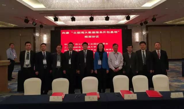 乘著北海市委務(wù)虛會的東風,2017年1月8日,在自治區(qū)工信委徐莉青副主任、北海市委常委、副市長曾子祥,桂林電子科技大學校長古天龍等領(lǐng)導見證下,清華大學國家服務(wù)外包人力資源研究院與桂林電子科技大學、北海工業(yè)園區(qū)管委會、中國電子北海產(chǎn)業(yè)園公司在深圳簽署合作協(xié)議,建設(shè)北部灣大數(shù)據(jù)及服務(wù)外包基地,標志著以軟件及信息服務(wù)業(yè)為主導產(chǎn)業(yè)的中國電子北部灣信息港進入新的發(fā)展階段。