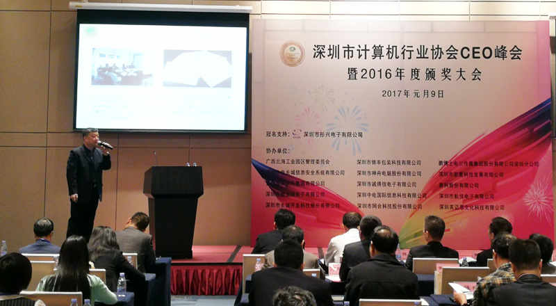 2017年1月9日,深圳市計算機行業(yè)協(xié)會CEO峰會暨2016年度頒獎大會隆重召開,作為北海電子信息產(chǎn)業(yè)的基礎(chǔ)核心、優(yōu)秀產(chǎn)業(yè)園區(qū)運營商的中國電子北海產(chǎn)業(yè)園發(fā)展有限公司當(dāng)選深圳市計算機行業(yè)協(xié)會副會長單位,索耀宗總經(jīng)理當(dāng)選為協(xié)會第九屆理事會副會長。
